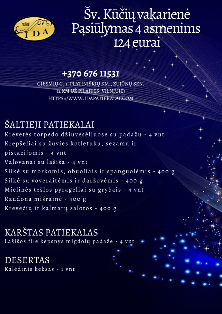 MENIU Daugiau POPULIARIAUSI Daugiau NUOMA Daugiau ASMENINIAI PASIŪLYMAI JŪSŲ ŠVENTEI! Paruošime individualų pasiūlymą arba pasiūlysime iš turimų atsižvelgdami į Jūsų poreikius! daugiau